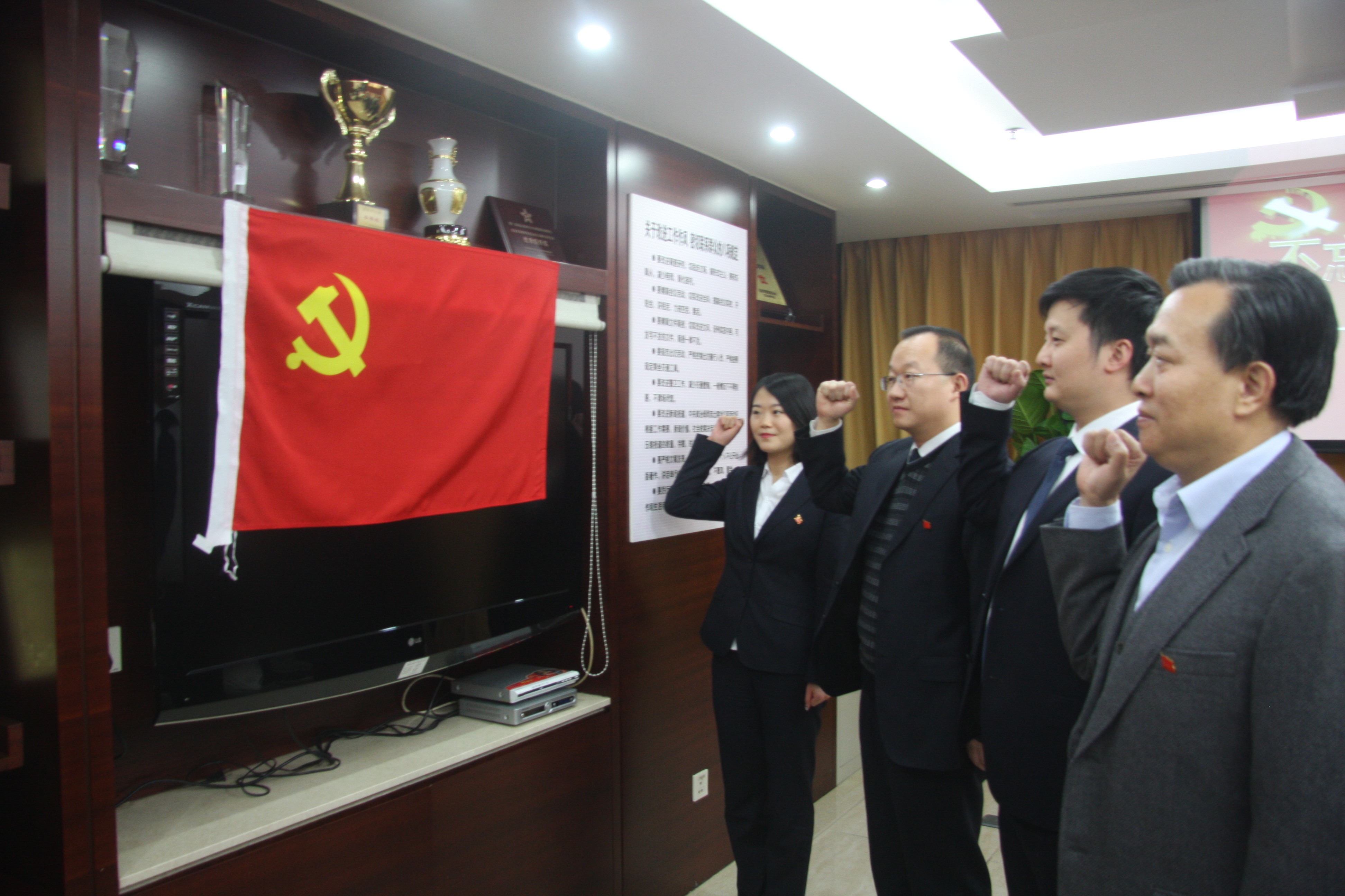 首先,驻京建管处党支部书记张学隆带领全体党员在党旗下高举右手,重温入党誓词,庄严做出自己的承诺。庄重严肃的仪式使得全体党员的心灵深受震撼,进一步增强了党员的光荣感、责任感、使命感。