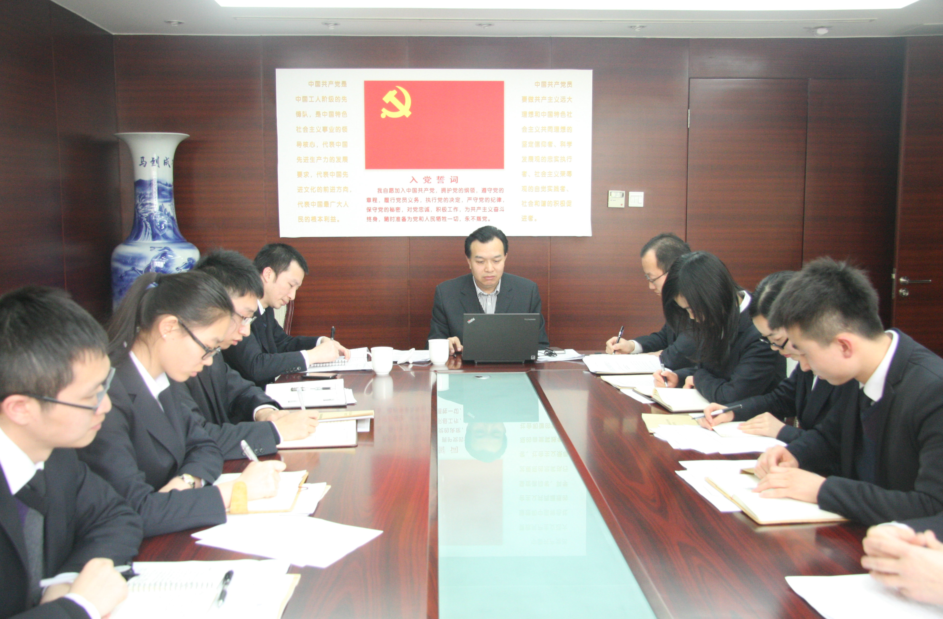 会议还学习并下发了省驻京建管处《2015年度行政事务管理规定》和《关于2015年对处内工作人员实施绩效考核的通知》文件。