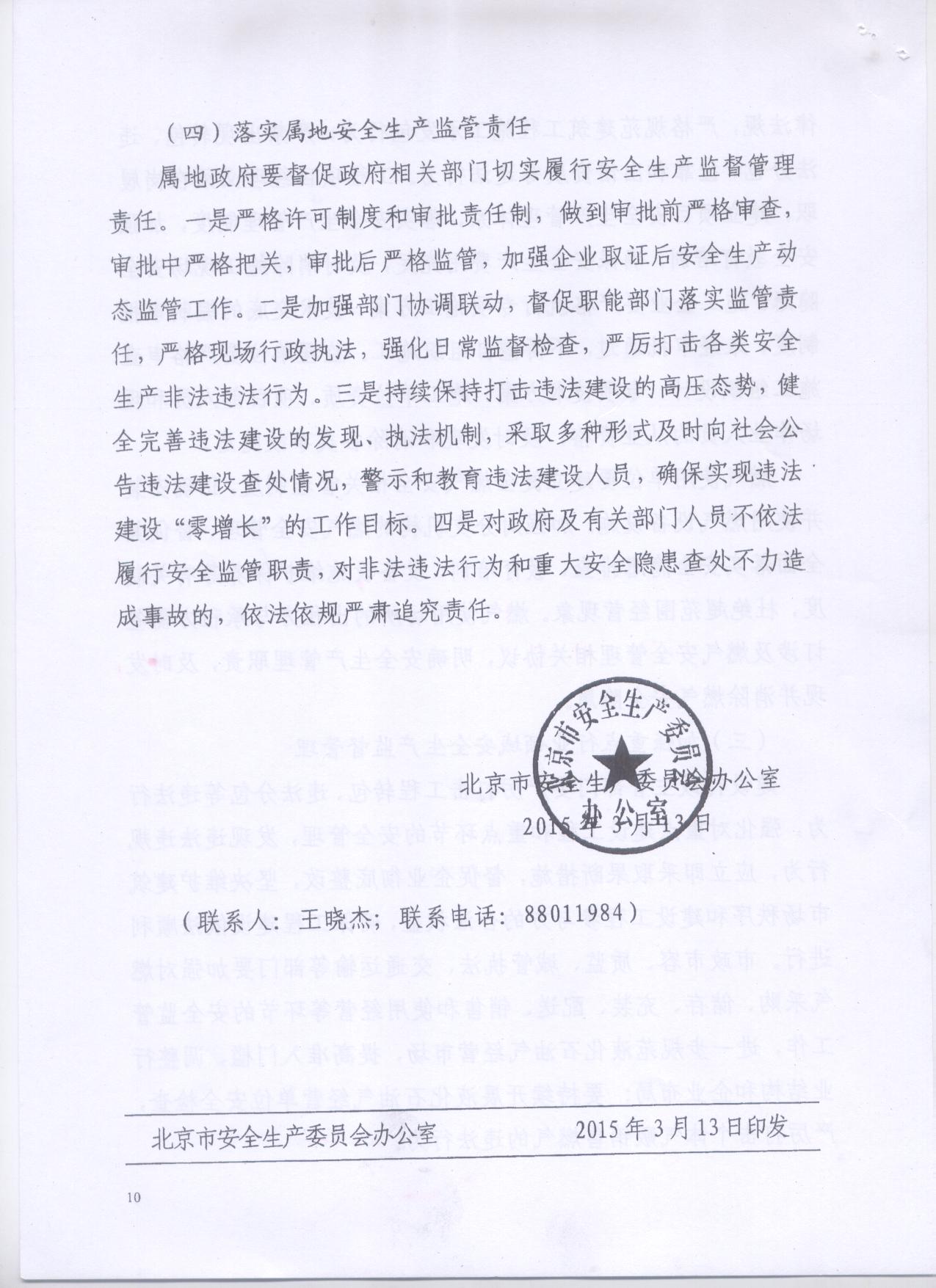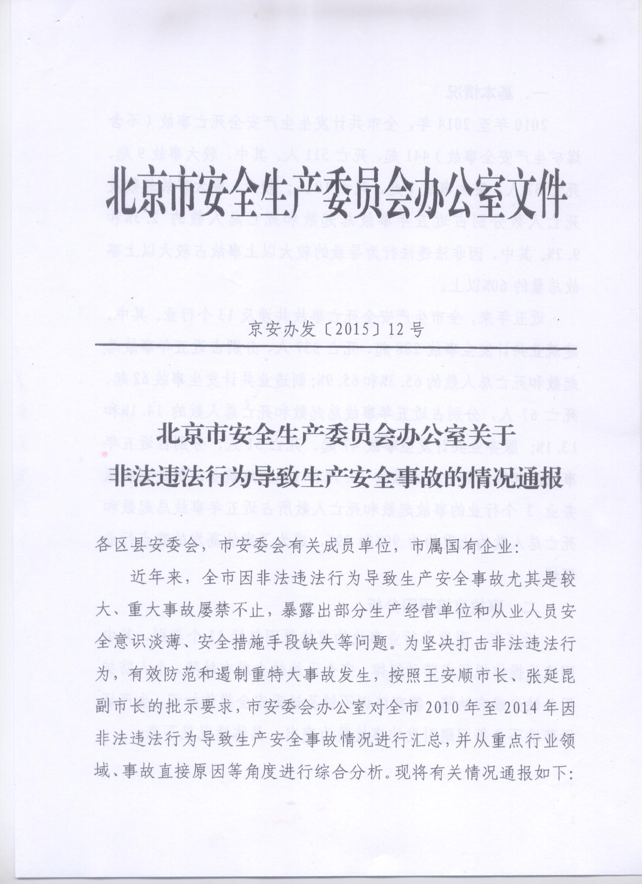 《北京市安全生产委员会办公室关于非法违法