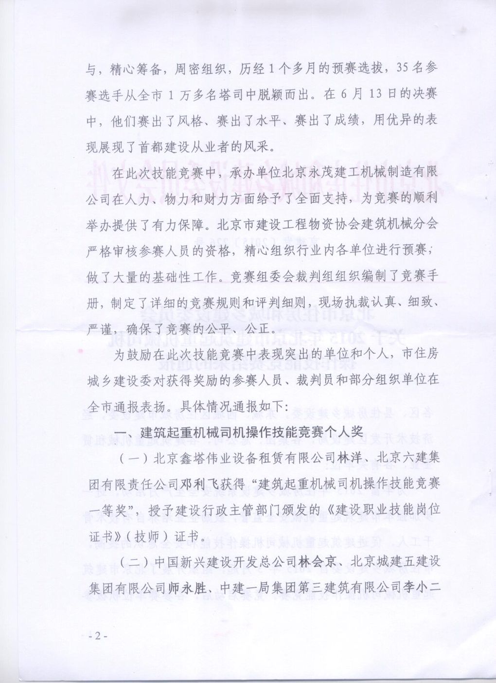 关于2015年北京市建筑起重机械司机