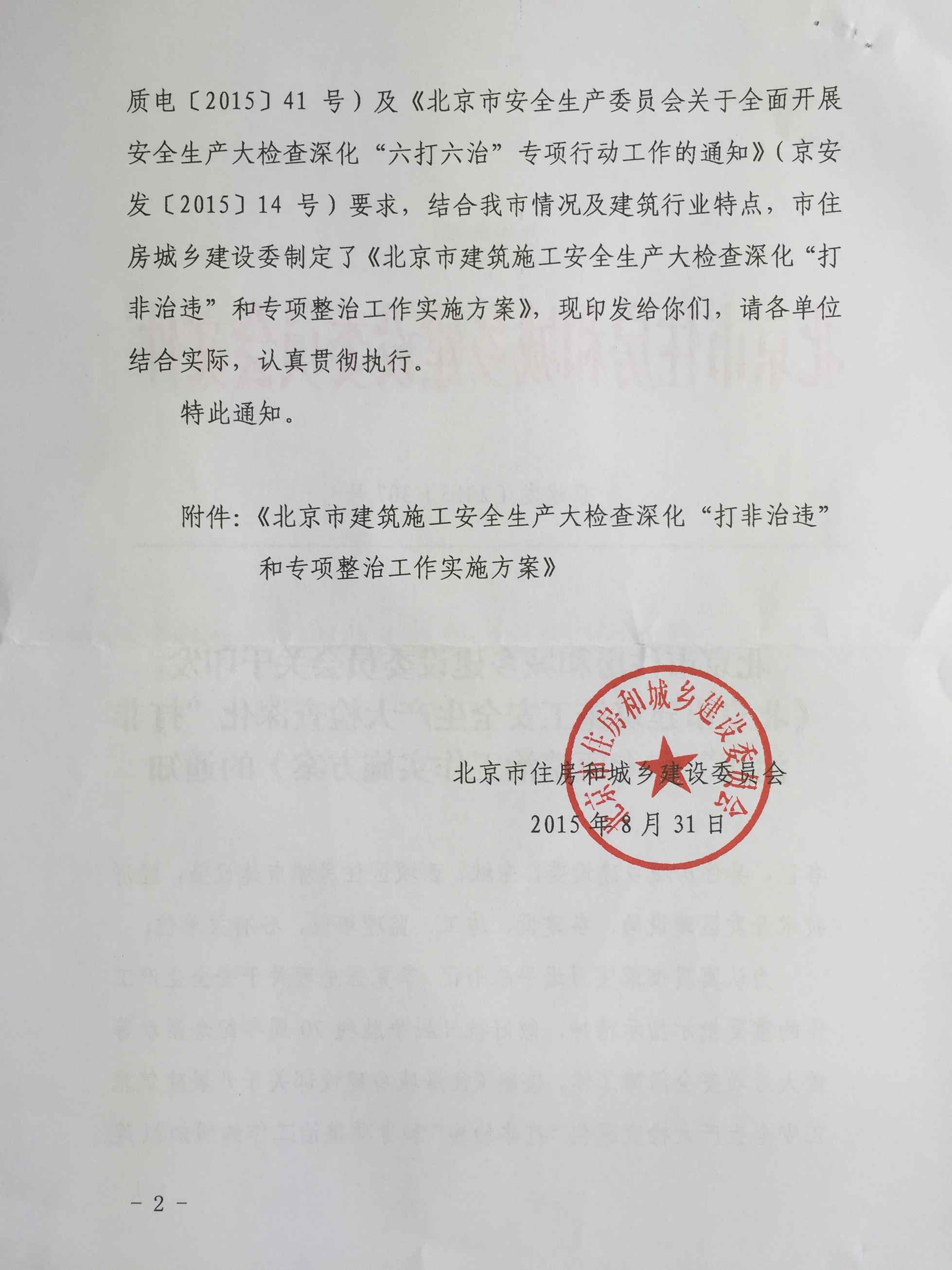 《北京市建筑施工安全生产大检查深化“打非